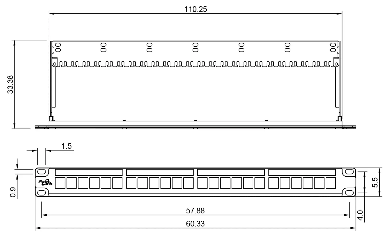 • Thân thanh Patch Panel được làm bằng thép tấm cán nguội SPCC 1,5mm và bề mặt được xử lý bằng sơn nung lỏng chống rỉ sét